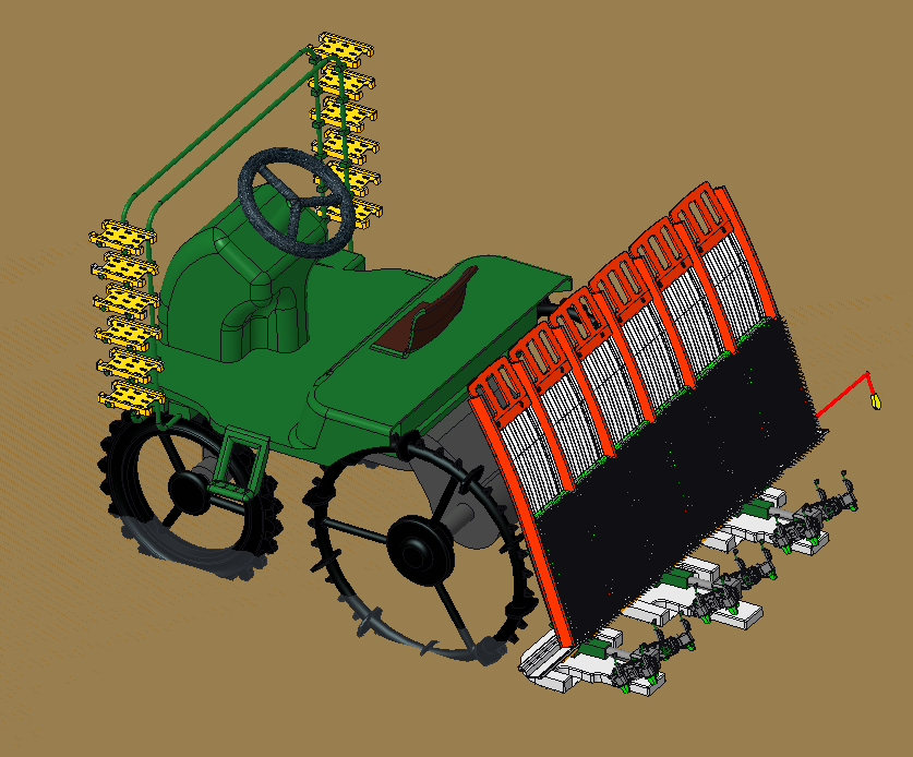 这款乘骑式水稻插秧机的三维模型,使用Pro/ENGINEER 5.0软件构建。它精确呈现了整机结构与关键部件间的装配关系,如分插机构、浮船和传动系统。通过三维建模,可以直观分析各部分的干涉情况与空间布局,有效避免了传统设计中的潜在问题。这份学习资料有助于深入理解插秧机的机械原理与设计思路,对相关设计与研究具有直接的参考价值。