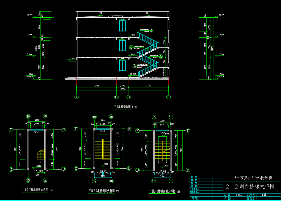 某3层教学楼全套设计(约4000平,含计算书,建筑图,结构图,施工组织设计,工程量计算书)