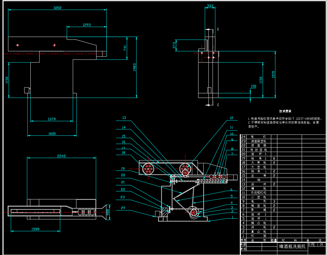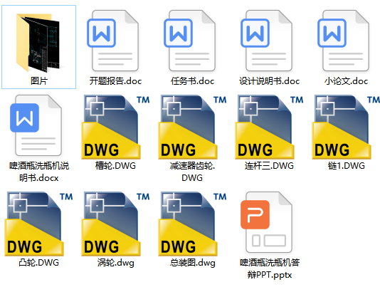 啤酒瓶洗瓶机设计(论文 CAD图纸 开题报告 任务书 答辩PPT)
