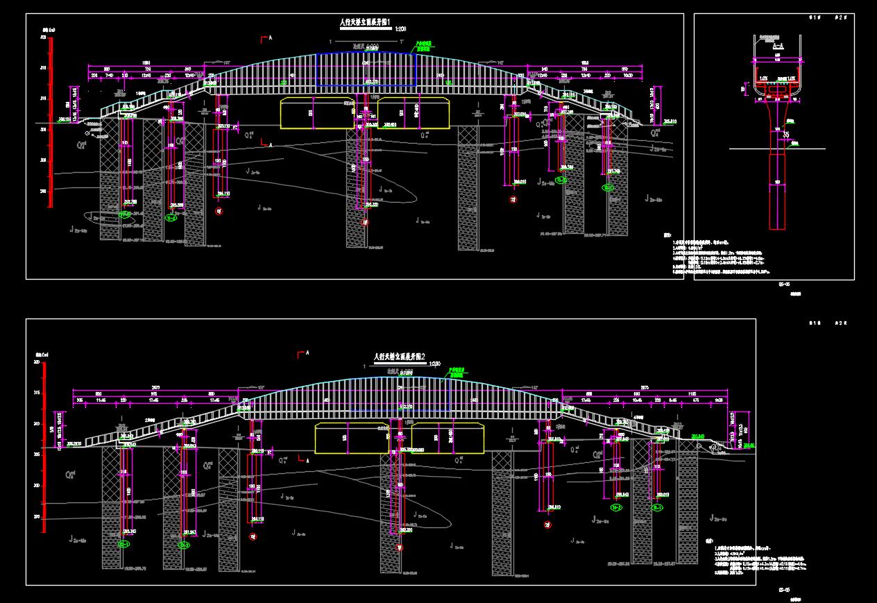 某人行过街工程项目施工图 桥梁结构(设计说明+CAD图纸+工程数量表) 某设计研究院图纸