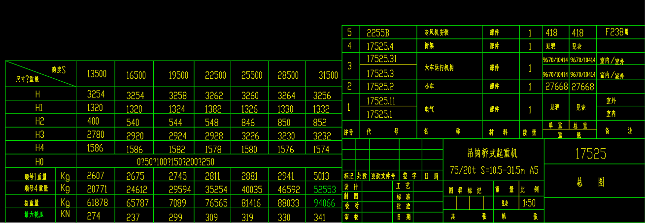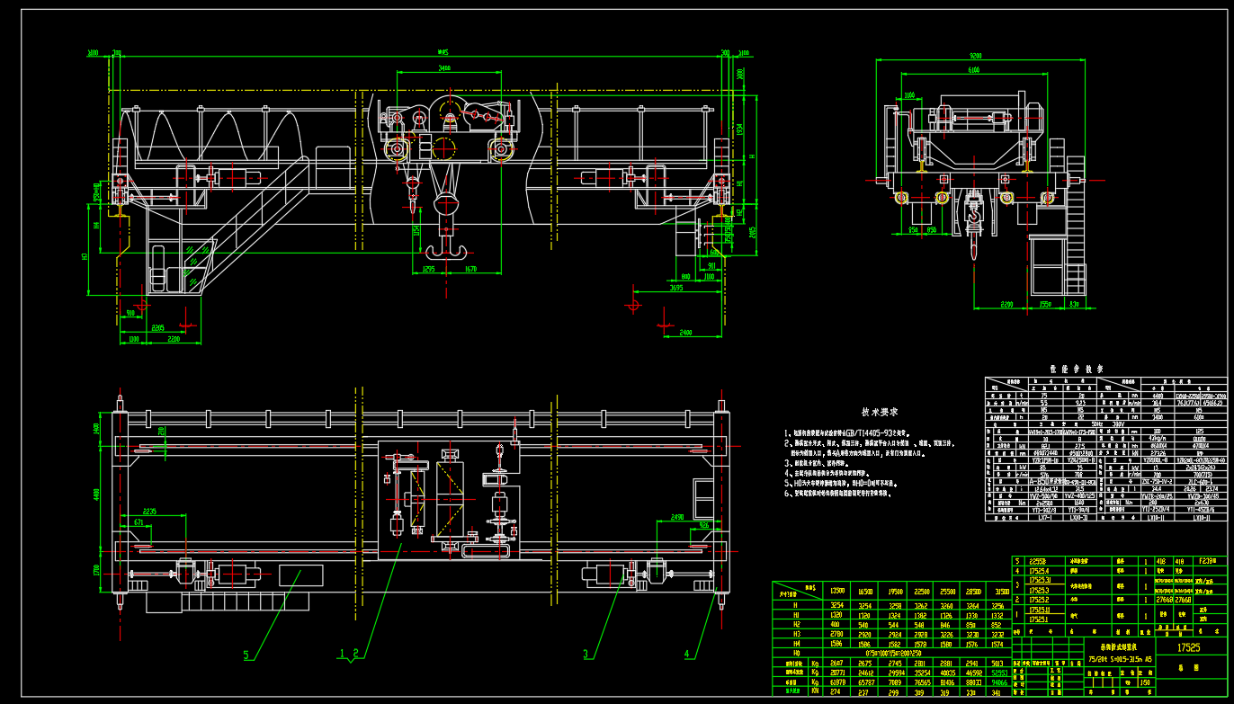 这张QD型75t电动双梁桥式起重机总装图,是理解设备整体布局的关键。它清晰展示了桥梁、大车运行机构、起重小车及电气系统的空间关系与装配基准。通过这份学习资料,可以直观把握主要构件的连接方式与安装位置,为后续的部件细化提供了准确的空间与尺寸依据,对理解这类重型起重设备的机械结构有重要帮助。