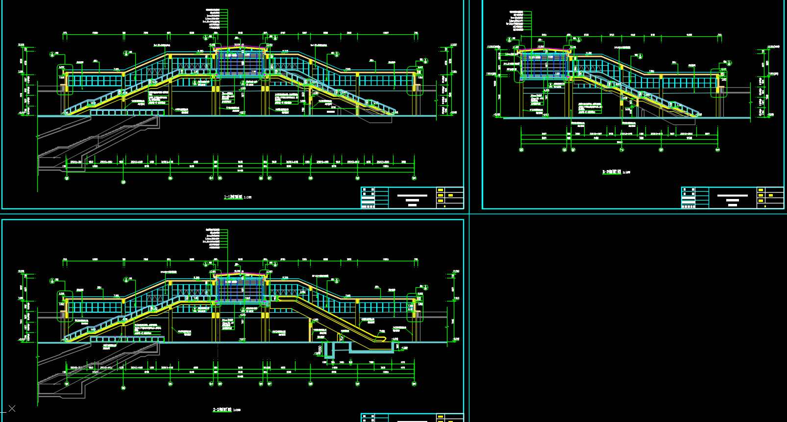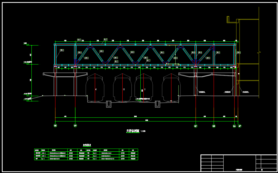 火车站钢桁架旅客天桥建筑结构施工图 天正 CAD