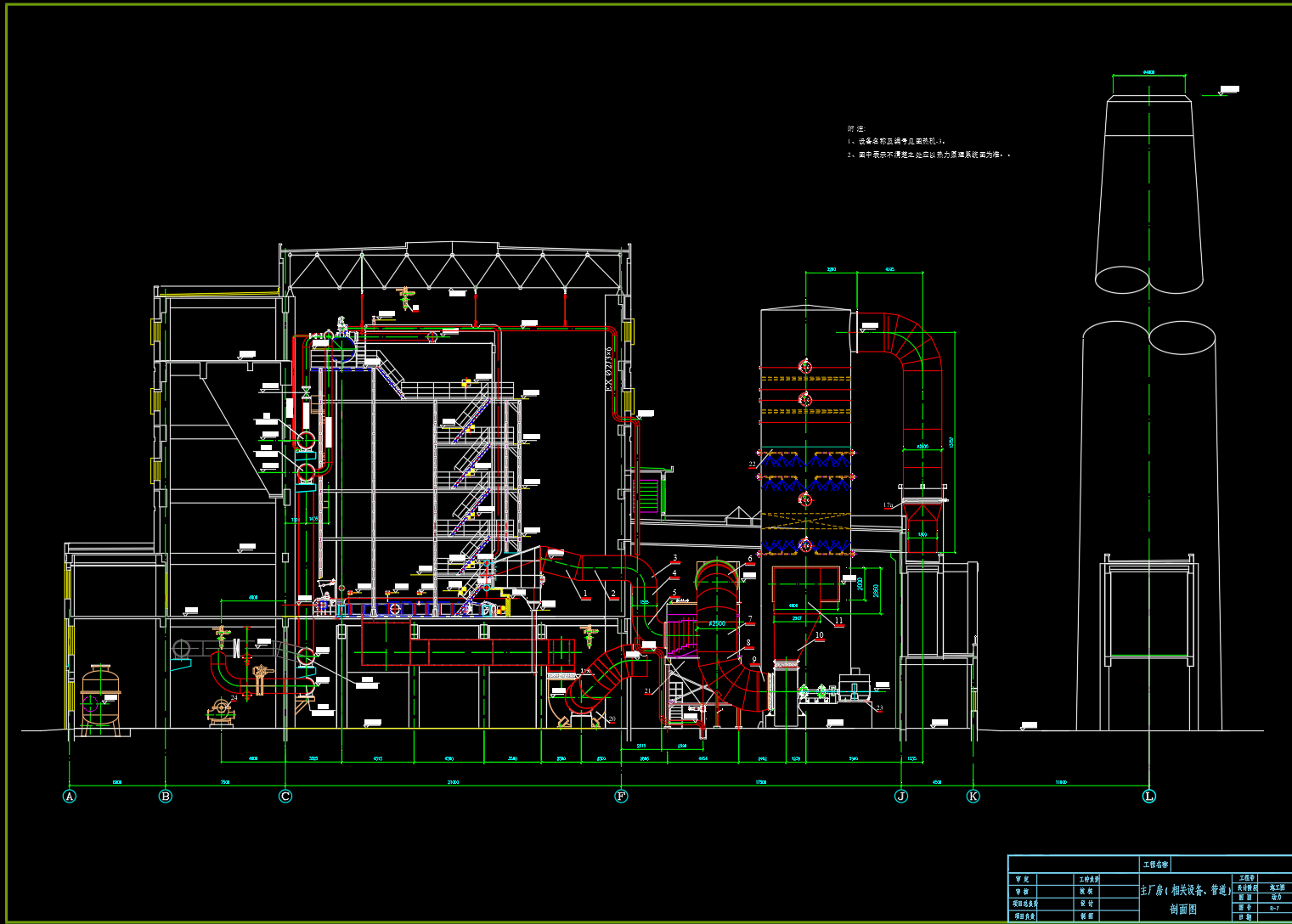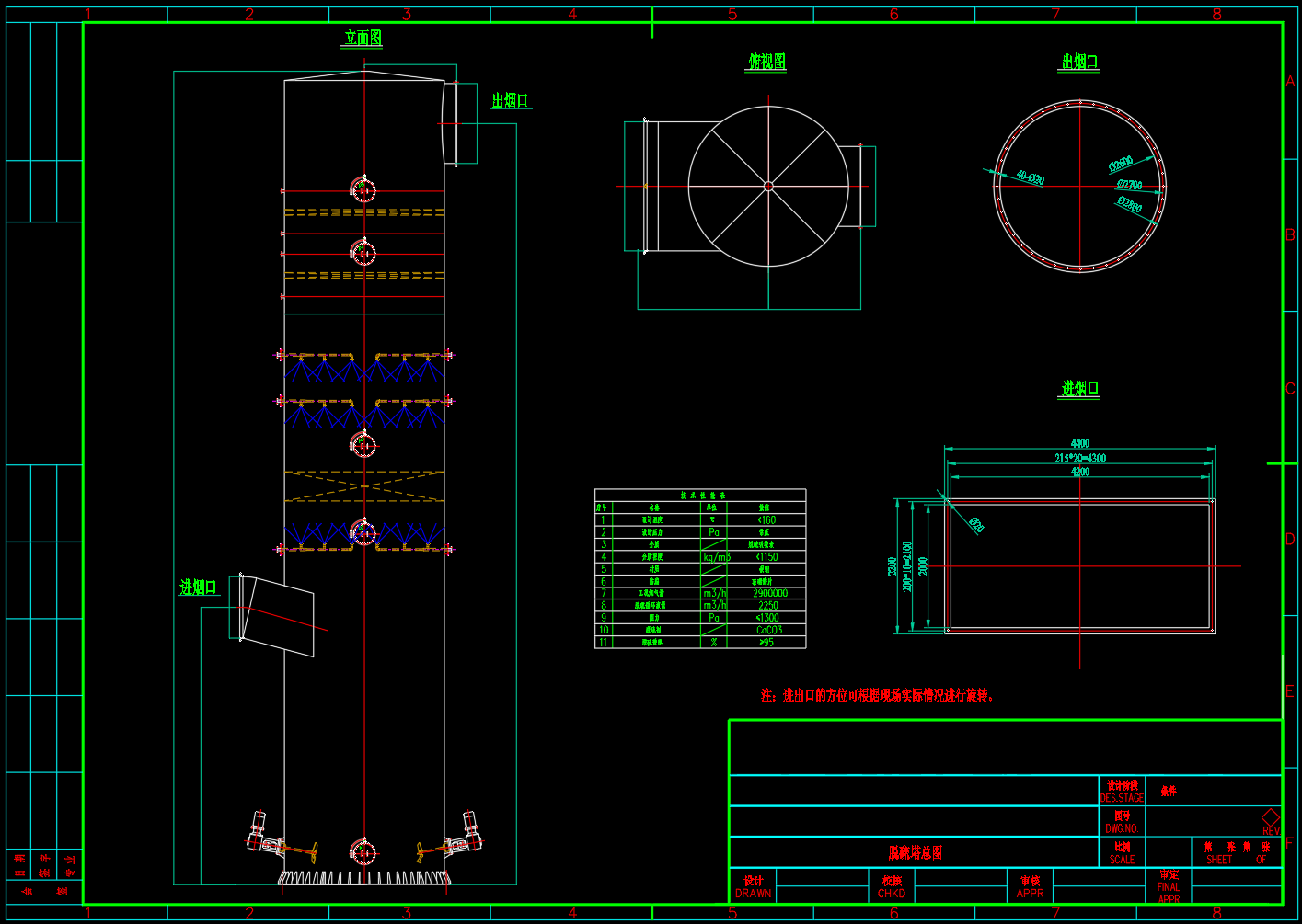 锅炉房脱硫塔装配安装图 CAD