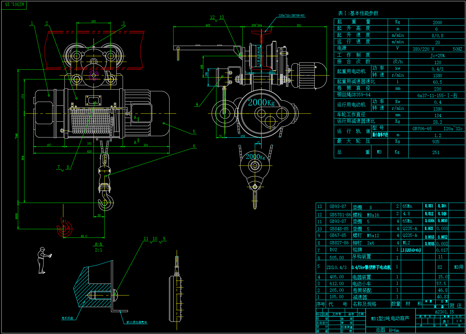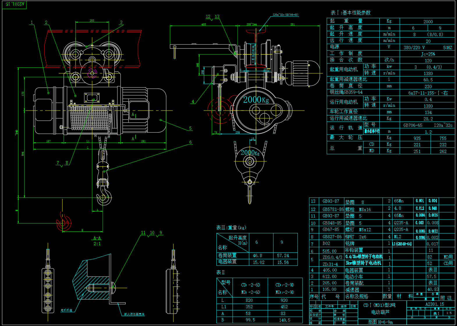 CDⅠ型2吨电动葫芦CAD套图是机械设计领域常用的实用资料,包含葫芦主体结构、传动部件等关键部分的设计细节,能直观呈现零部件的装配逻辑和尺寸配合关系。通过套图可快速掌握电动葫芦的构造原理,为相关设计工作提供清晰参考,是学习和应用过程中的重要辅助工具。