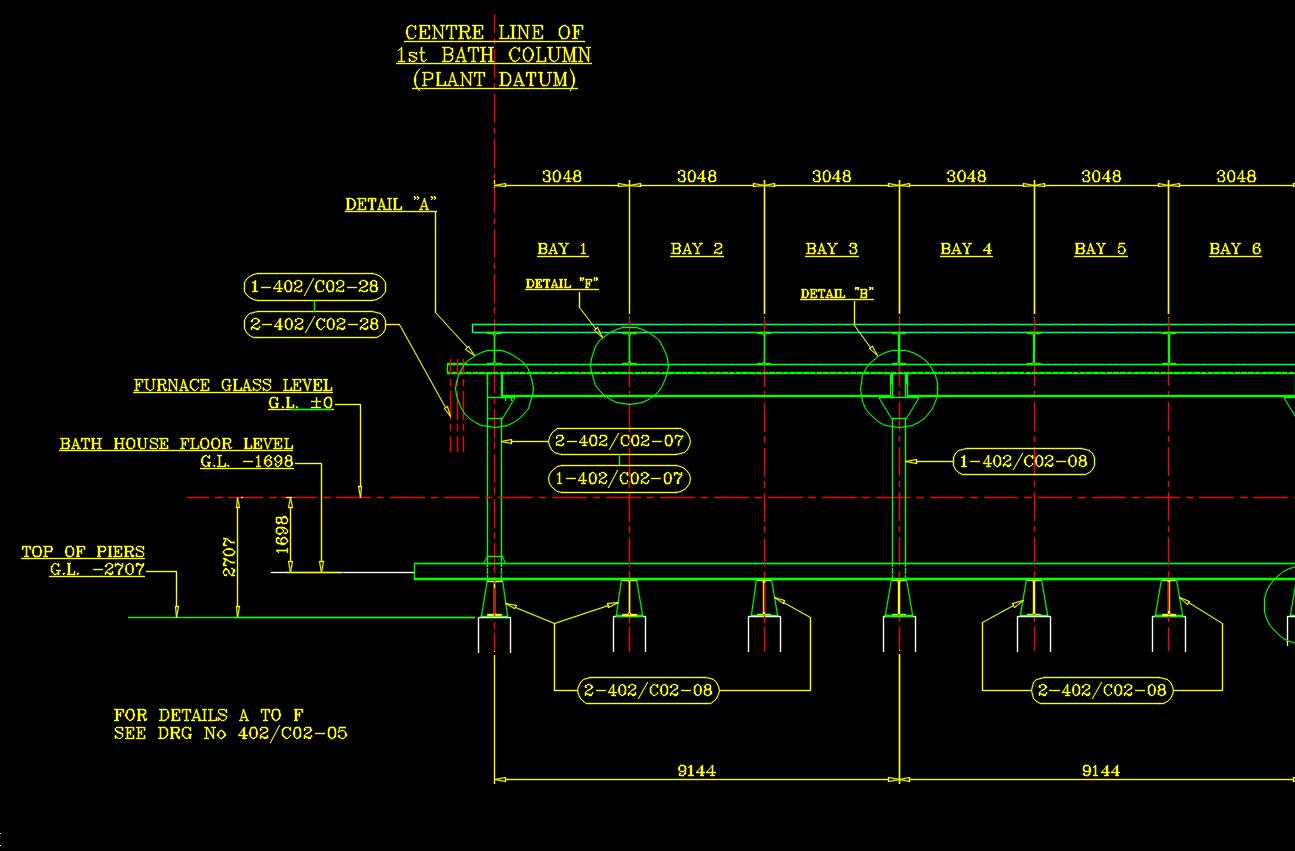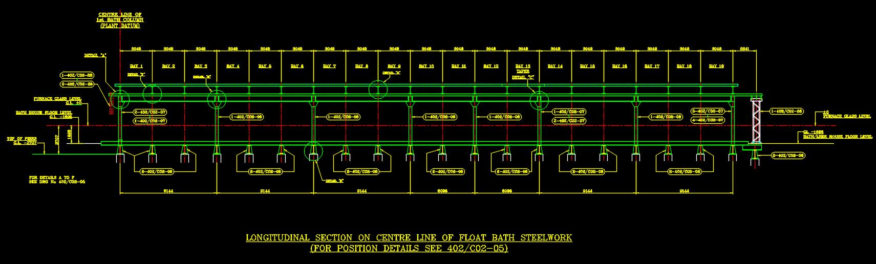 皮尔金顿600T浮法玻璃锡槽钢构图纸,是锡槽钢结构设计的实用资料。它清晰呈现钢构框架的布局、连接节点及受力分布,帮助准确把握结构稳定性,确保安装时各部件精准对接。针对600T规格锡槽特点,图纸细节贴合实际工况,为相关设计工作提供可靠参考。