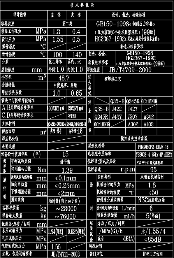 48m3聚氯乙烯聚合釜总装配图CAD图纸