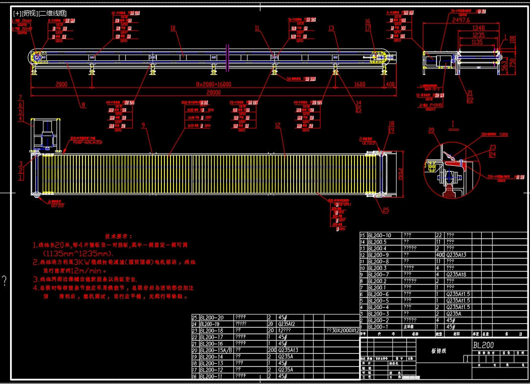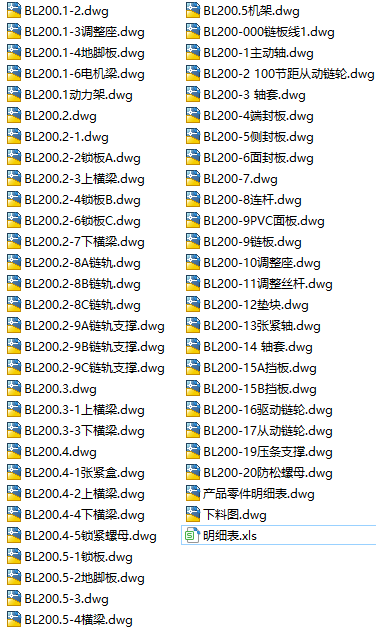 BL200链板输送线全套图详细展示了设备的结构组成与装配关系,涵盖链板、链轮、驱动装置等关键部件的设计细节。通过视图标注与连接方式说明,为设备安装调试、维护保养提供直观参考,有助于快速掌握设备运行原理,减少设计过程中可能出现的结构冲突,显著缩短项目周期,是一套实用性强的工程学习资料。