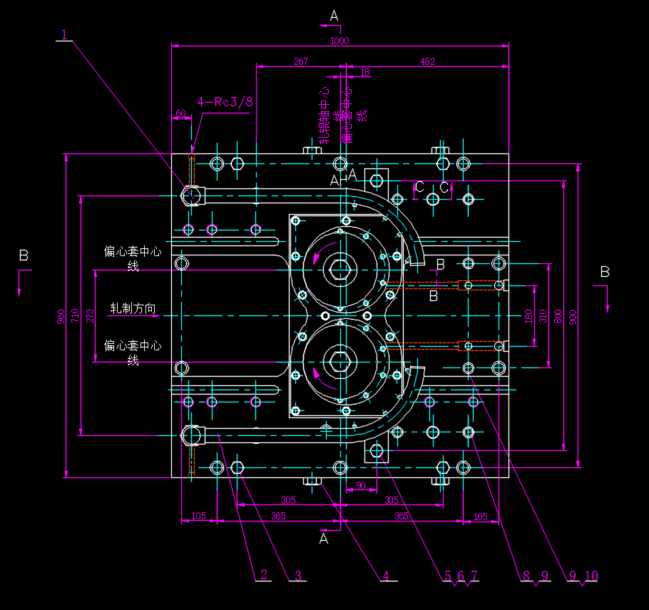 DC9673-2 φ285预精轧机辊箱CAD