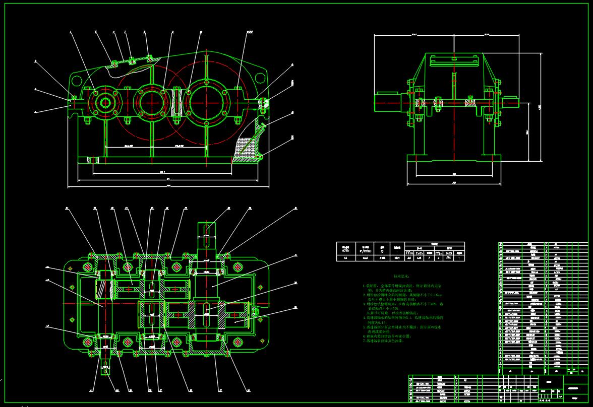 二级圆柱斜齿轮减速器装配图 CAD