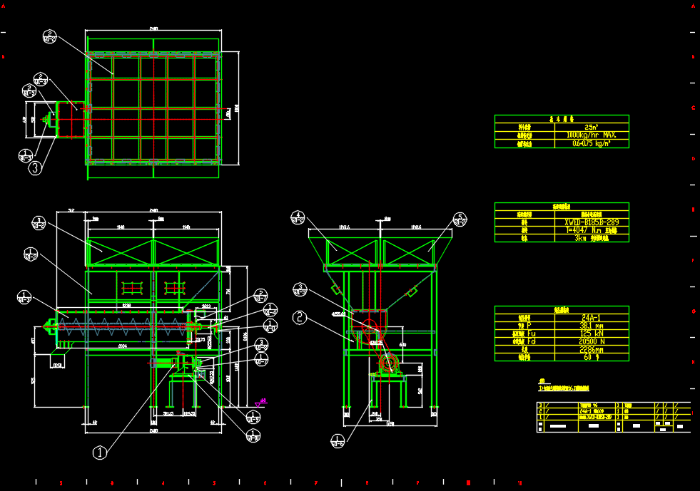 受料斗是物料转运的第一道承接装置,能缓冲来料冲击;料仓则负责稳定储存,调节物料供给节奏。相关CAD图纸清晰呈现两者的结构细节,像进料口倾斜角度、仓壁加强筋布局等,直观展示设计逻辑,是理解设备原理的实用学习资料。
