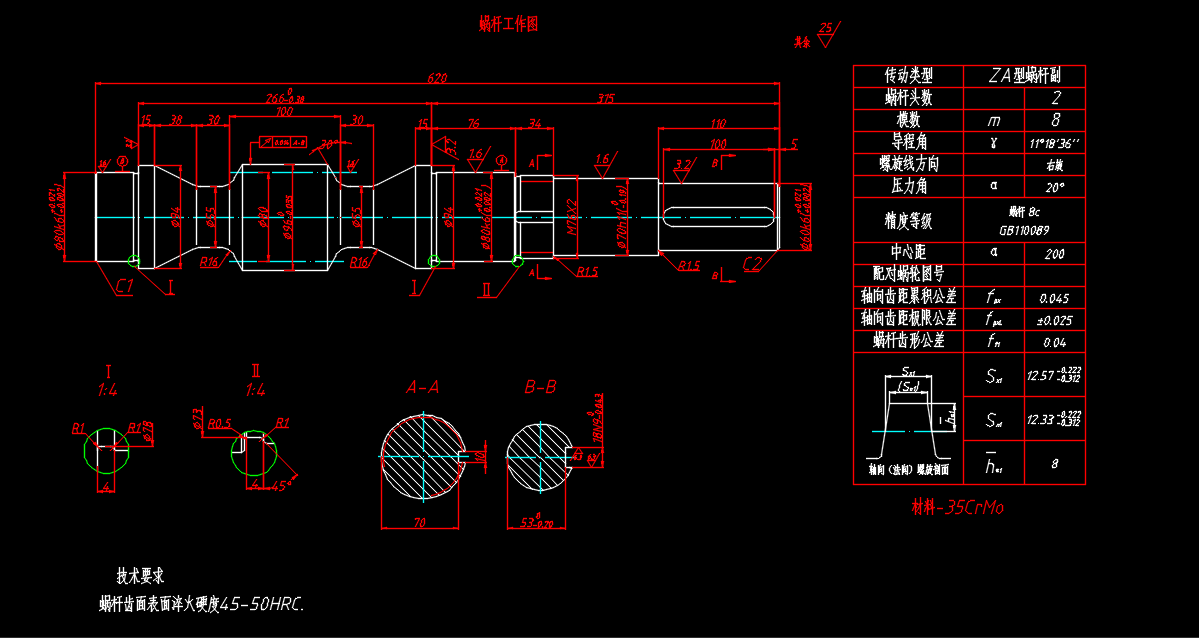 圆柱蜗轮蜗杆工作图是机械传动设计中的重要技术载体,承载着蜗轮蜗杆的关键几何参数、啮合特性及装配要求。通过清晰的视图表达和尺寸标注,直观呈现零件结构细节,确保传动精度与机构稳定性。作为指导加工与检验的技术依据,有效减少设计误差,显著缩短研发周期,是机械设计中传递技术信息的实用资料。