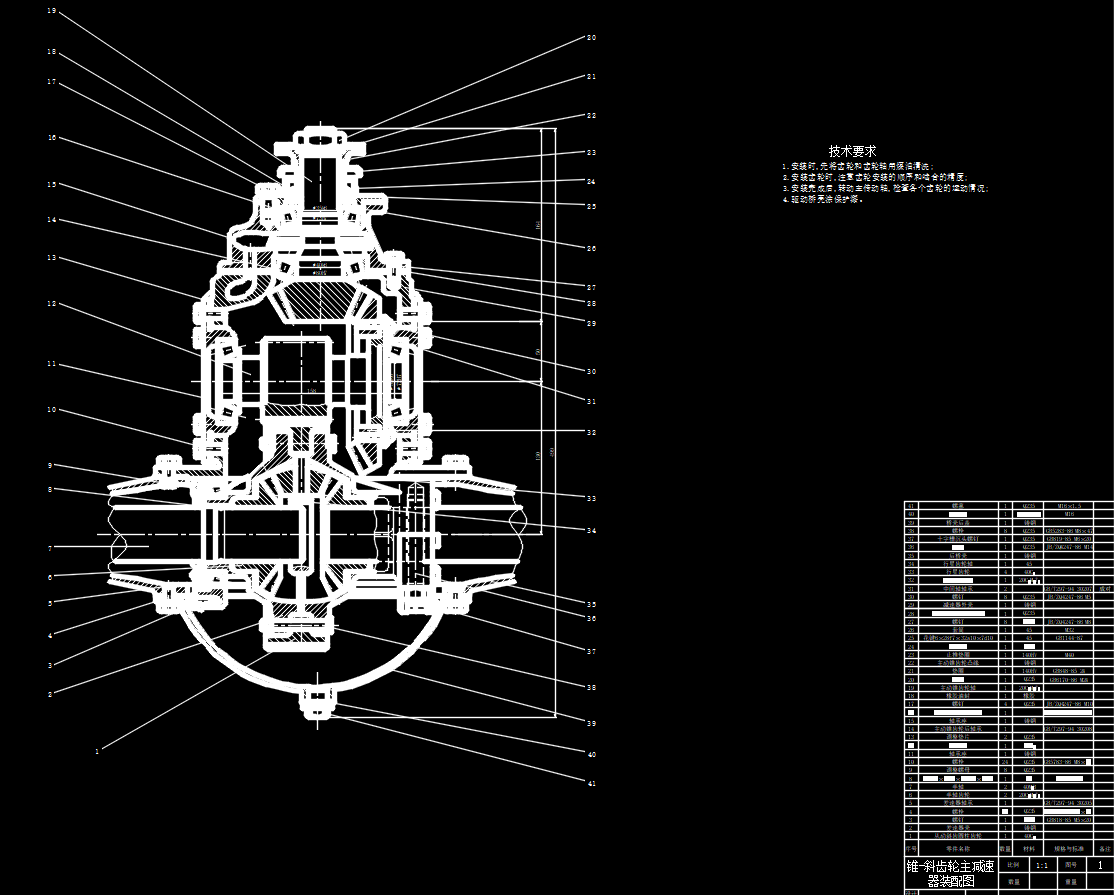 切诺基汽车后桥主减速器装配总成【一张CAD装配图】