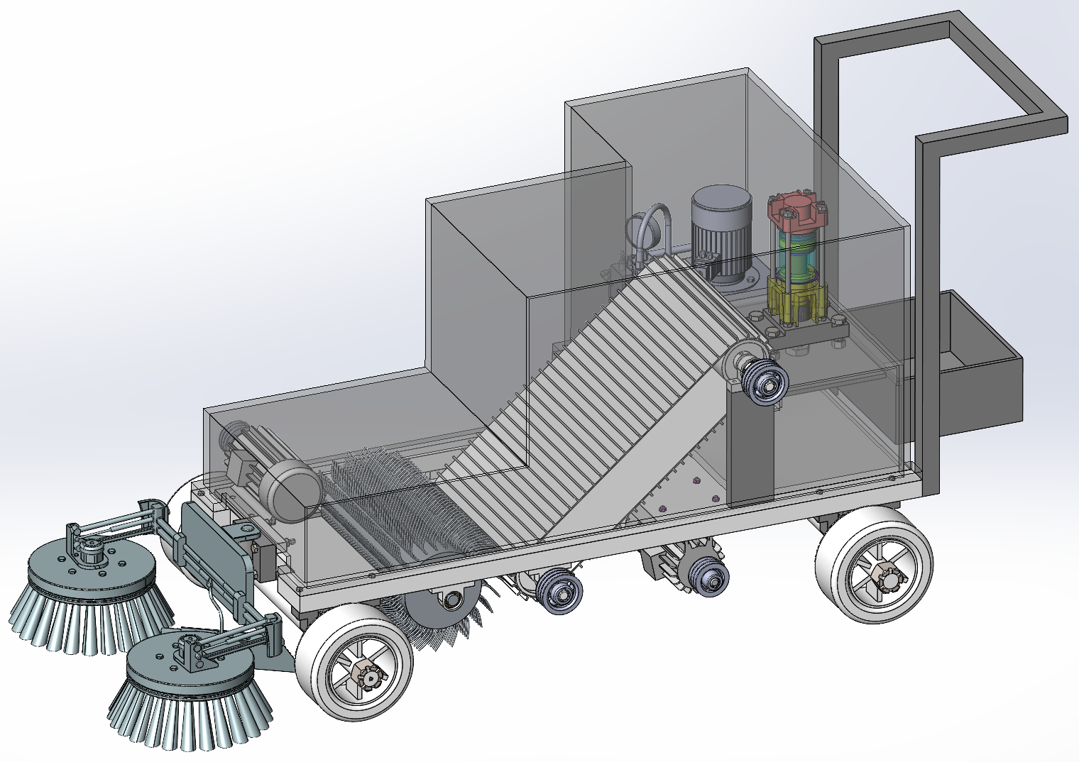 这款自动化落叶清扫收集车的三维模型,基于SolidWorks平台构建,直观展示了其整体结构与核心部件布局。模型清晰呈现了清扫机构、收集仓、行走底盘等关键模块的装配关系与空间配合,有助于深入理解其自动化清扫与高效收集落叶的工作逻辑。通过三维视角,可以细致分析各功能部件的设计细节与运动协调性。