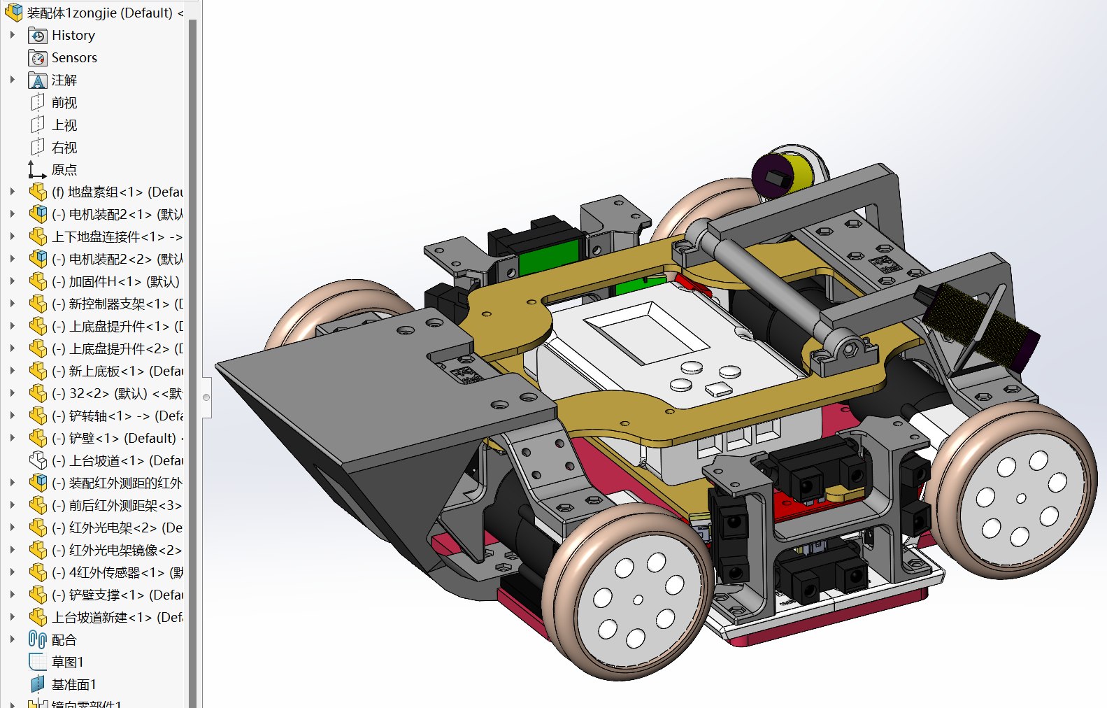 红外避障智能小车的SolidWorks三维模型,清晰展示了其机械结构与电子模块的集成布局。该三维数据直观反映了车体底盘、传感器支架及轮系等关键部件的装配关系,有助于深入理解其空间布置与干涉检查。通过三维视角,可以评估红外传感器安装角度对探测范围的实际影响,为硬件调试提供重要参考。此处展示的图片为配套资源包内的资料截图,旨在让您在正式使用前,能对其内容有更全面、直观的初步认识。需要特别说明的是,资源包中专业资料需在相应的软件环境中才能完整浏览、编辑或进行后续操作。