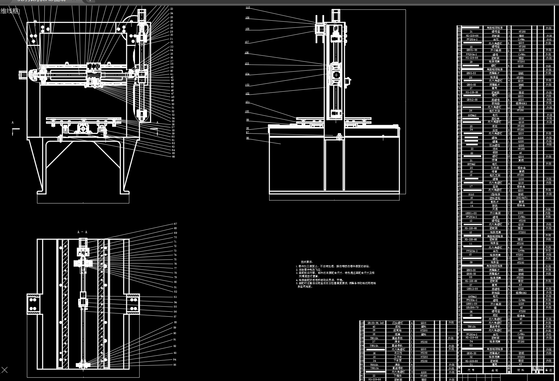 3D打印机CAD图纸 共17张图纸 备注:此份资料零件缺少名称,请根据装配图自行补齐