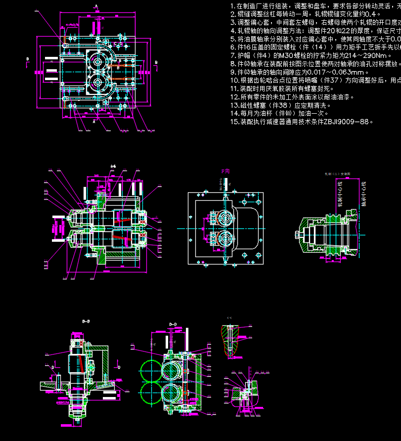 DC9673-2 φ285预精轧机辊箱CAD装配图
