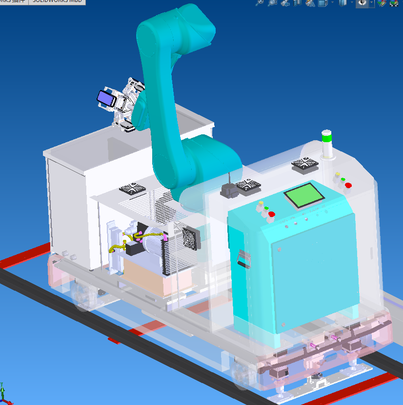 A28 RGV小车(穿梭车)集成轨道式车载机器人超声清洗机(SolidWorks+step)