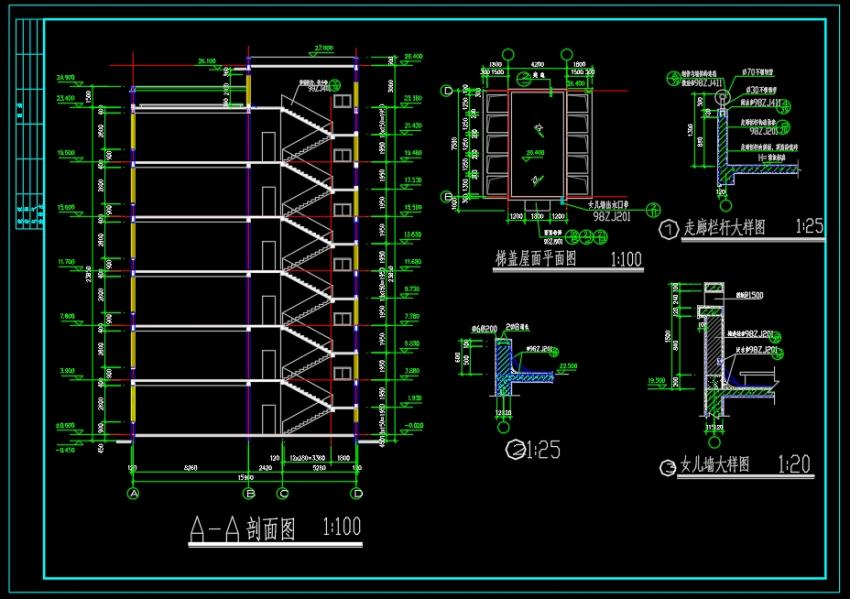 6层3068.32平南宁XX中学楼 建筑+结构图