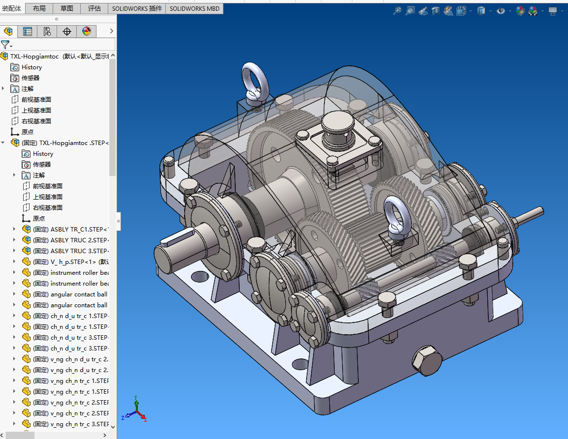 三级减速器 齿轮箱(SolidWorks+x_t+step)