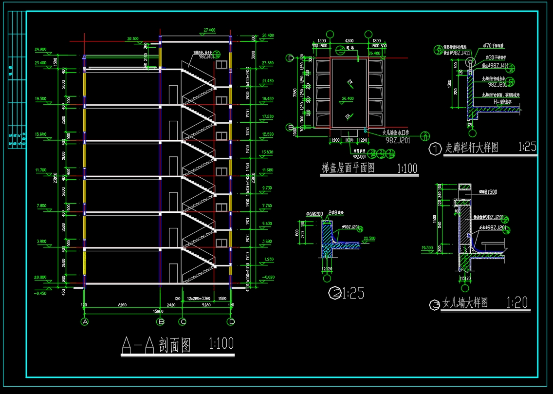 南宁市XX中学教学综合楼CAD图纸
