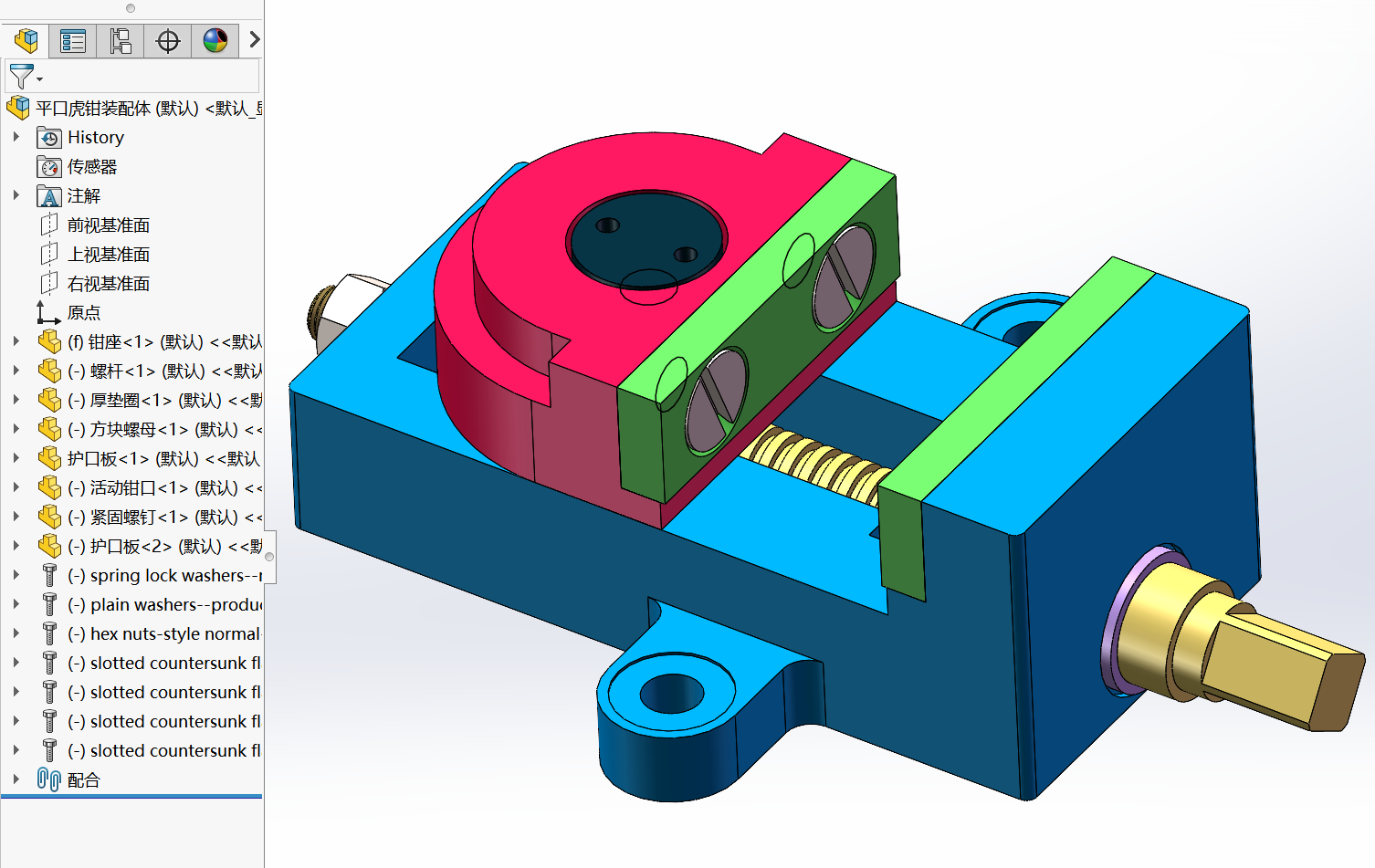 平口虎钳的设计资料包含CAD图纸与SW三维模型,能直观展现其结构。这类虎钳通过精密配合的钳口与丝杠实现可靠夹持,是机械加工中的基础夹具。图纸与模型详细呈现了各零件形态及装配关系,有助于理解其自锁性与刚性设计。使用三维软件能辅助检查干涉,优化细节。这套学习资料对掌握传统夹具设计要点很有帮助。