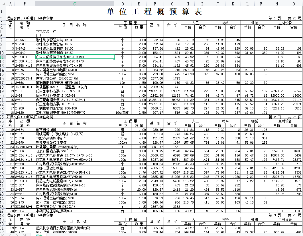 甘肃高层住宅楼投标预算的编制,是项目成本控制与投标决策的关键依据。这份涵盖土建、水电暖及消防专业的预算文件,需基于当地定额、市场信息价及详细设计内容进行精确计算。它直接关系到投标报价的竞争力与项目后续实施的盈亏平衡。编制过程需严格遵循工程量计算规则,确保各专业工程量无漏项、重项,综合单价组价合理。一份严谨专业的投标预算,能为项目中标及后续成本管理奠定坚实基础,是投标阶段不可或缺的核心学习资料。