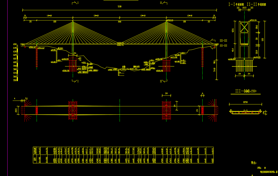 总长530米桥宽22.5米双向四车道公路I级双塔斜拉桥(计算书105页,CAD图纸12张,答辩简要)