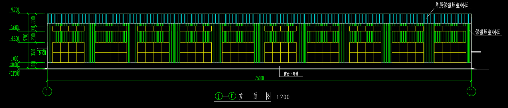 长75米,宽42米轻钢厂房毕业设计(计算书、部分建筑结构图) 建筑面积约为3000㎡