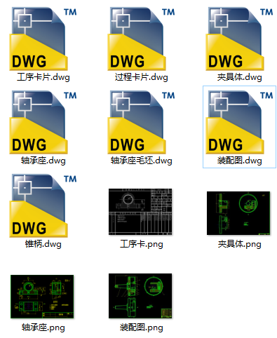 轴承座夹具设计CAD图纸(装配图 零件图 毛坯图 过程卡一份 工序卡一张)