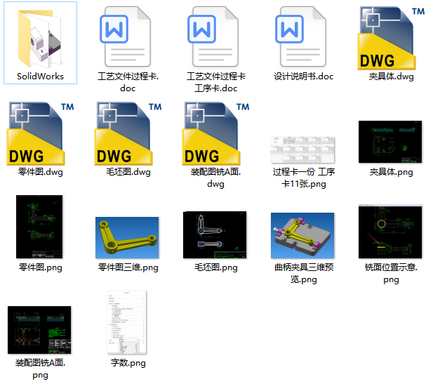 曲柄加工工艺及夹具设计(铣A面)【说明书+CAD图纸+SW三维图+工序卡+过程卡】