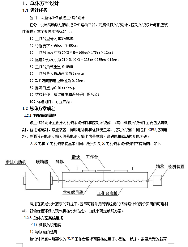 课程设计 X-Y数控工作台机电系统设计(课程设计说明书+CAD装配图)