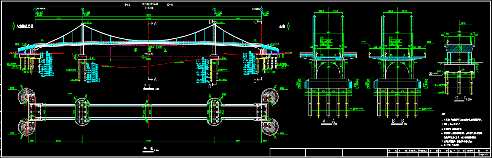 某人行天桥施工图设计,人行悬索桥施工图