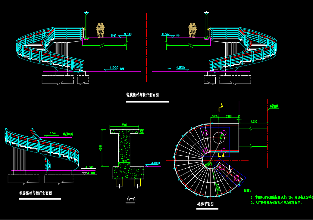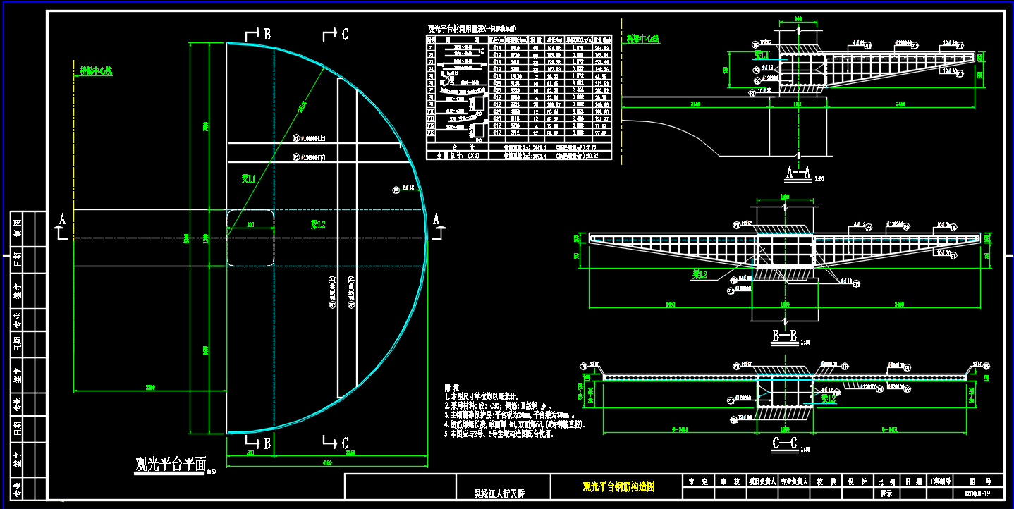 某人行过街工程项目施工图 桥梁结构(设计说明+CAD图纸+工程数量表) 某设计研究院图纸