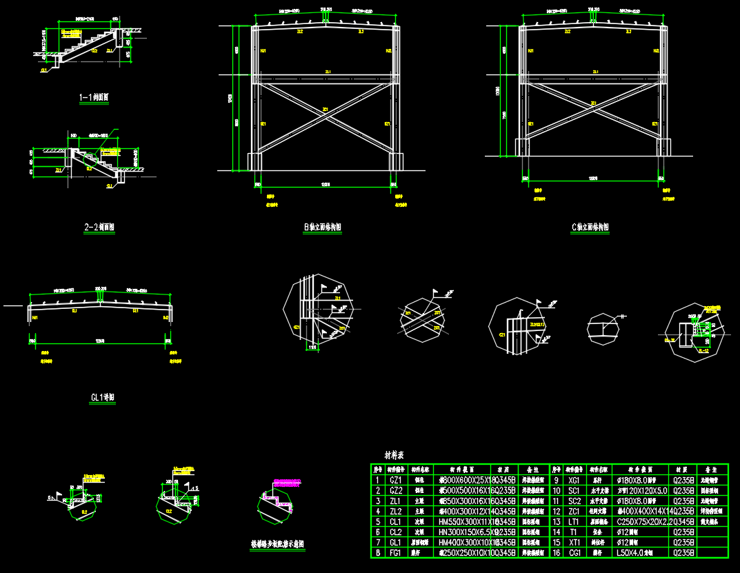 小区钢结构天桥结构施工图