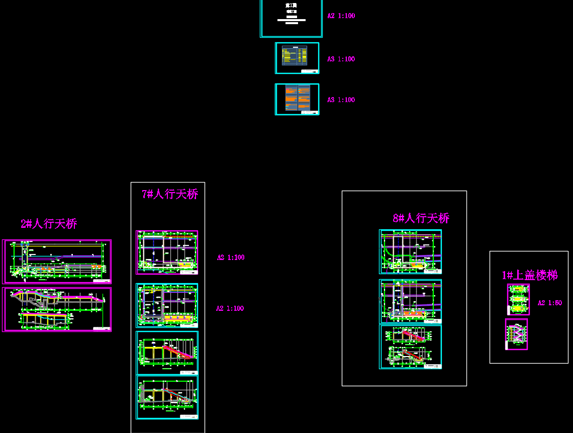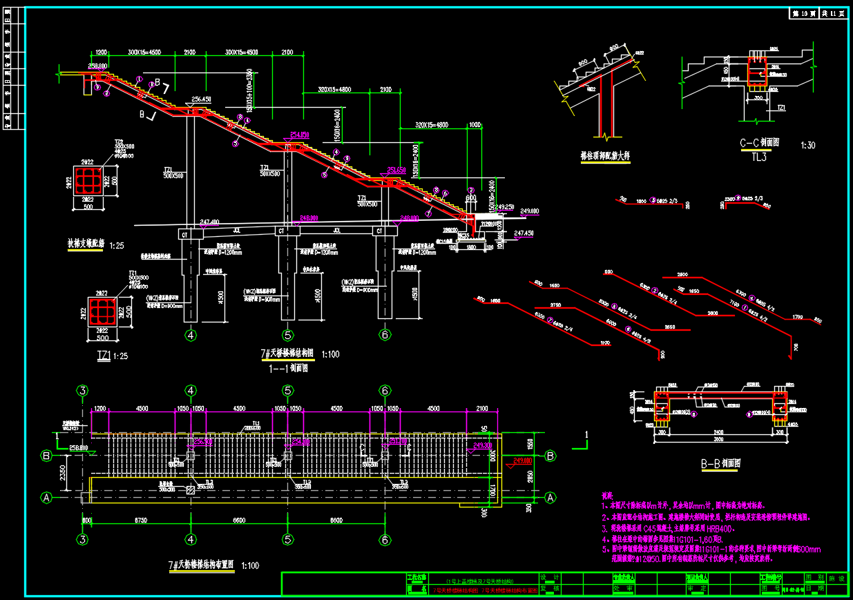 典型人行天桥施工图(主桥+四阶梯)CAD