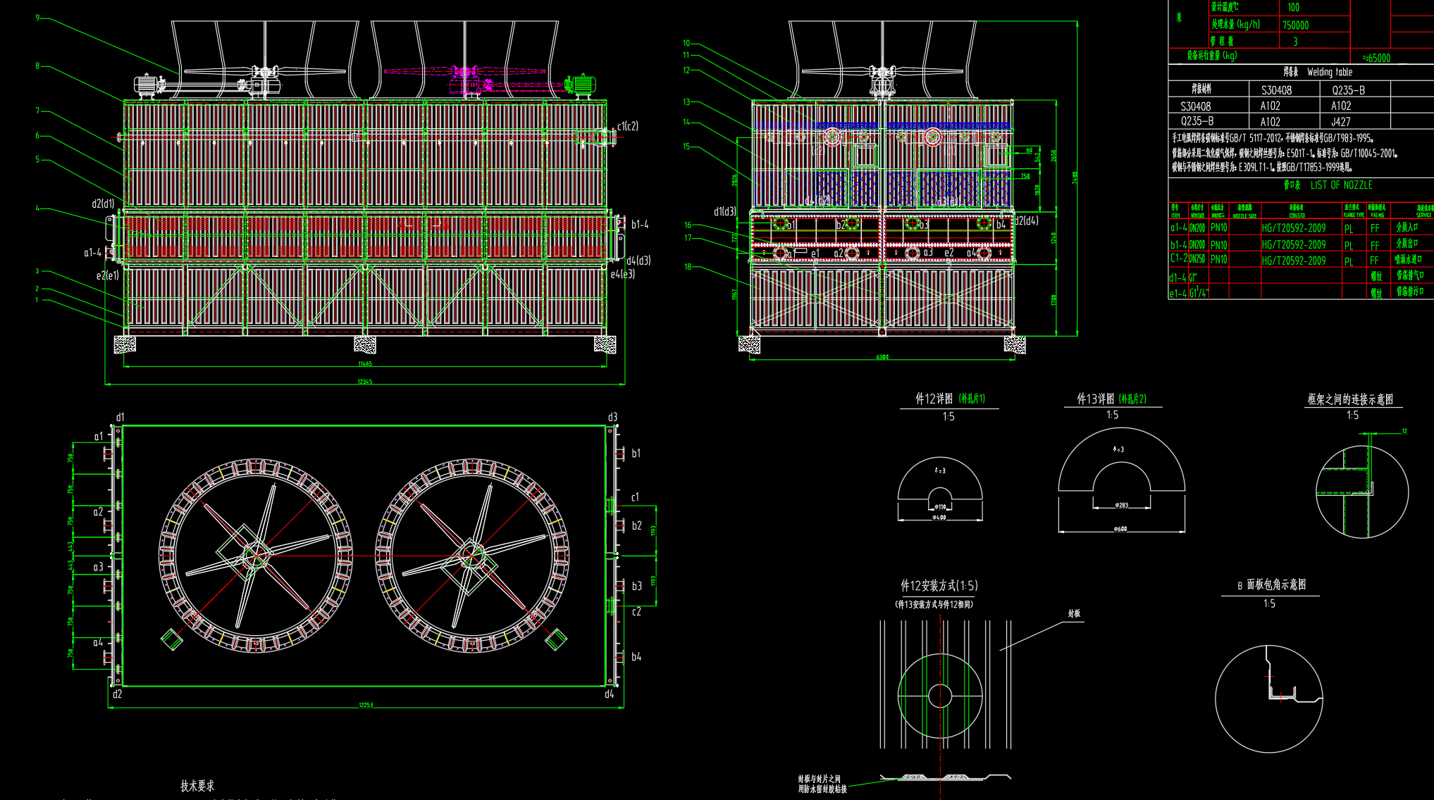 这份关于1406J-WBK01-01闭式冷却塔的总图学习资料,清晰地展示了其核心结构与布局。它采用闭式循环设计,工艺流体在盘管内密闭流动,通过喷淋水在管外蒸发吸热来实现高效冷却,有效防止了流体污染和结垢。图纸详尽呈现了塔体、盘管组、风机、水泵及收水器等关键部件的装配关系,是理解其紧凑设计、优异防腐蚀性能及稳定运行原理的实用资料。掌握这份总图,对于相关系统的规划与应用具有重要参考价值。
