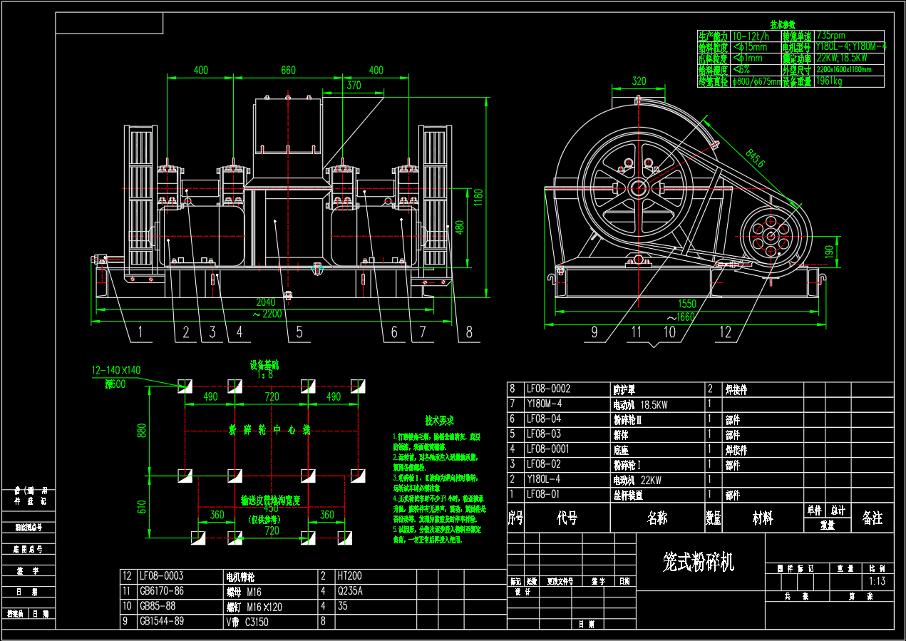 笼式粉碎机CAD图纸