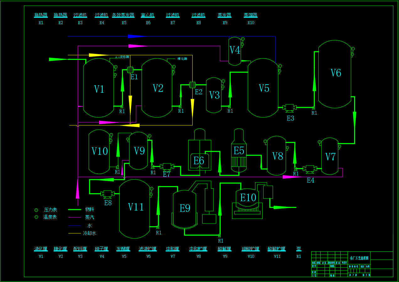 年产10万吨L-乳酸发酵工厂设计全厂工艺流程图(CAD)