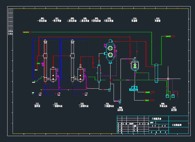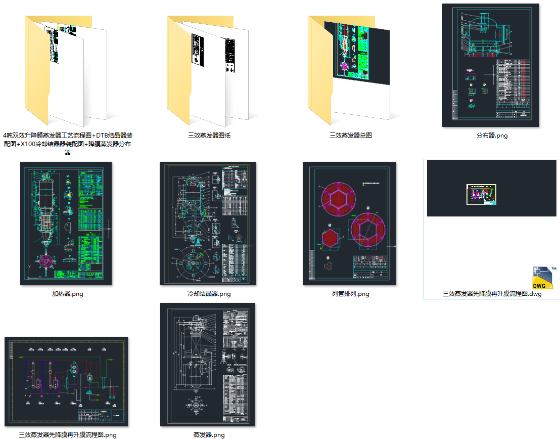 4吨双效升降膜蒸发器工艺流程图+DTB结晶器装配图+X100冷却结晶器装配图+降膜蒸发器分布器