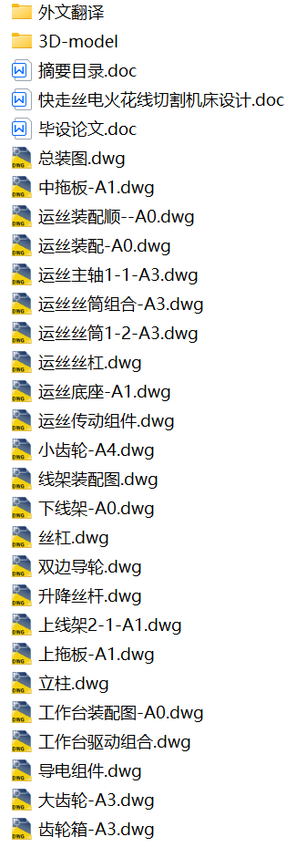 快走丝电火花线切割机床设计(论文+CAD图纸+三维图+外文翻译) 备注:三维图只有基础部分装配,细节请自行补齐