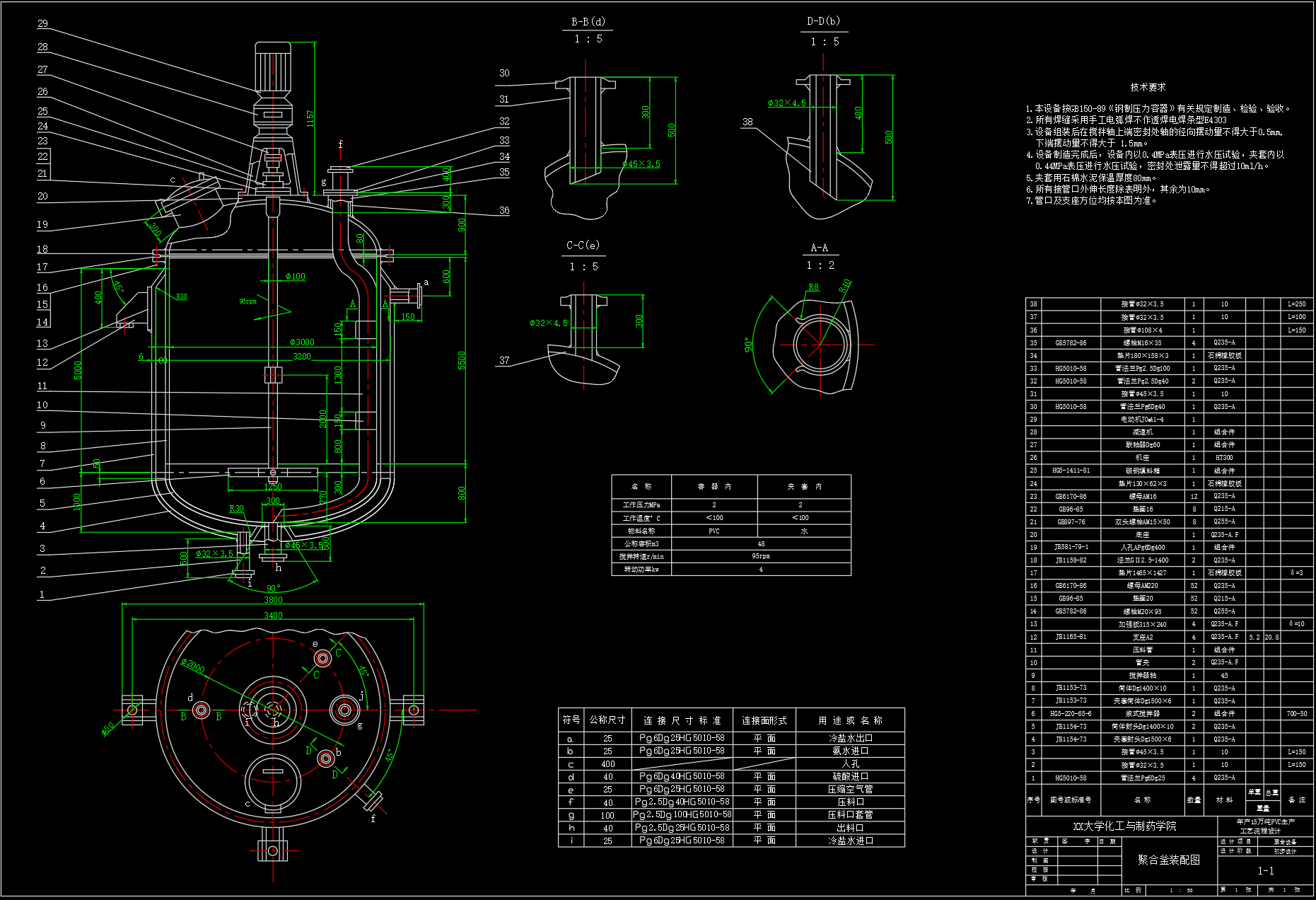 列管式固定床反应器CAD装配图(20万吨 年乙二醇项目)