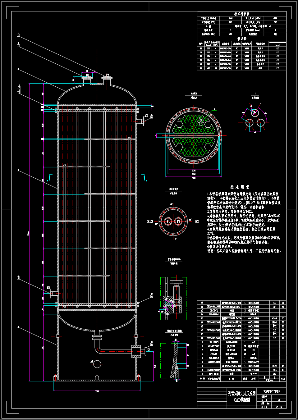列管式固定床反应器CAD装配图(20万吨 年乙二醇项目)