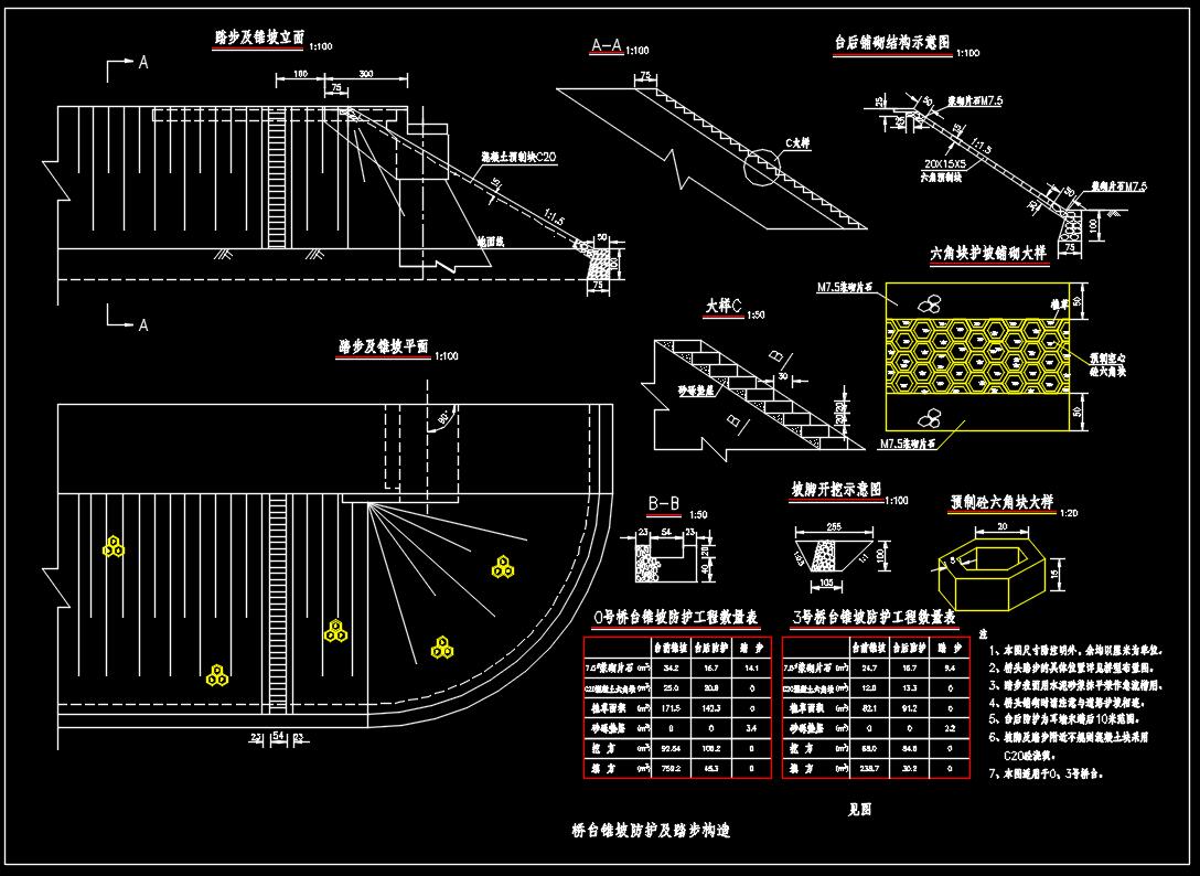 某公园现浇实心板栈桥景观人行天桥图纸及计算(施工图设计说明+结构计算+工程数量表)