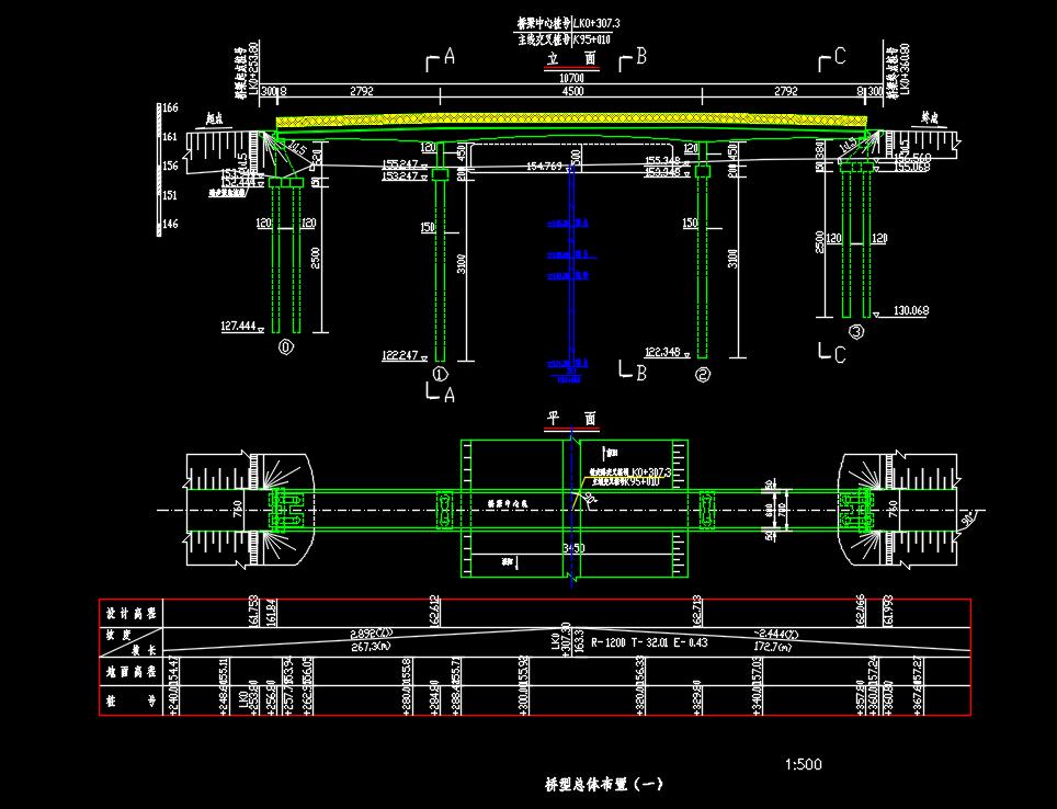 107米变截面连续箱梁天桥施工图纸(CAD图纸+天桥说明+全桥工程数量数量表)