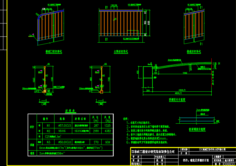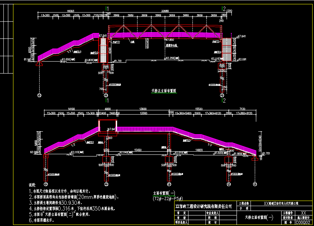 某中学人行天桥施工图图纸-桥梁(某设计院)【 施工图设计说明+计算书+CAD图纸】