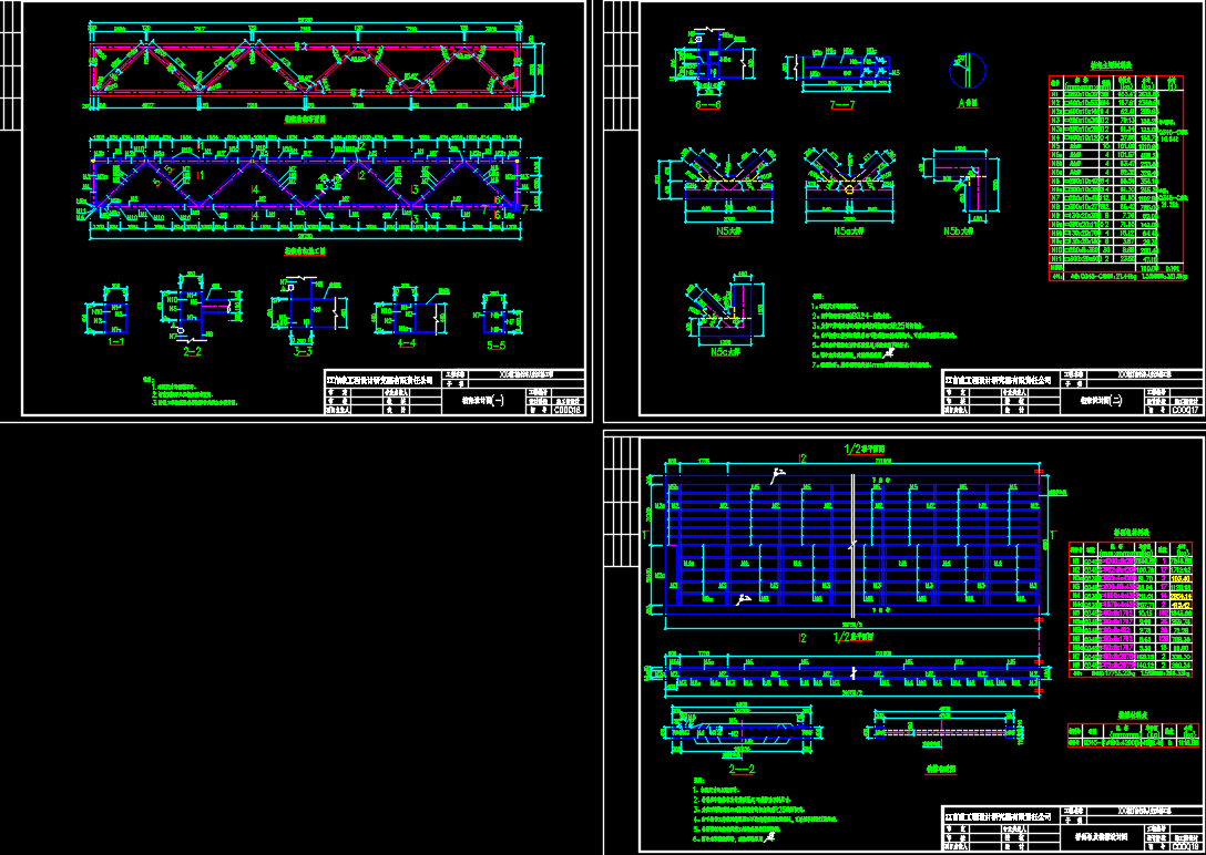 某城市人行钢桁架天桥施工图设计CAD