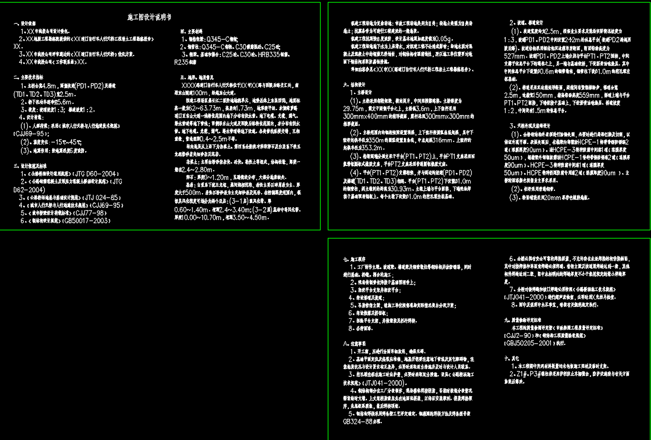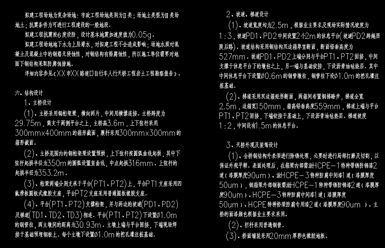 曲线钢箱梁人行天桥结构(结构施工图设计说明+CAD图纸)