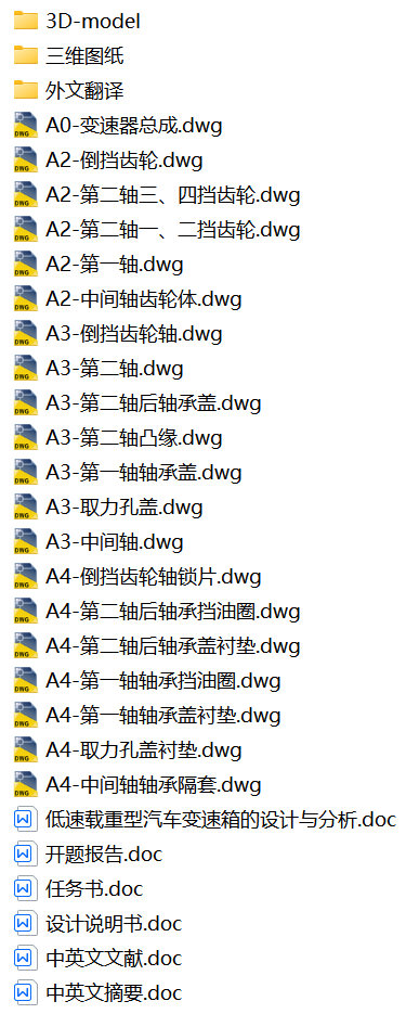 低速载重型汽车变速箱的设计与分析【说明书+CAD图纸+SW三维+开题报告+任务书+外文翻译+文献翻译】