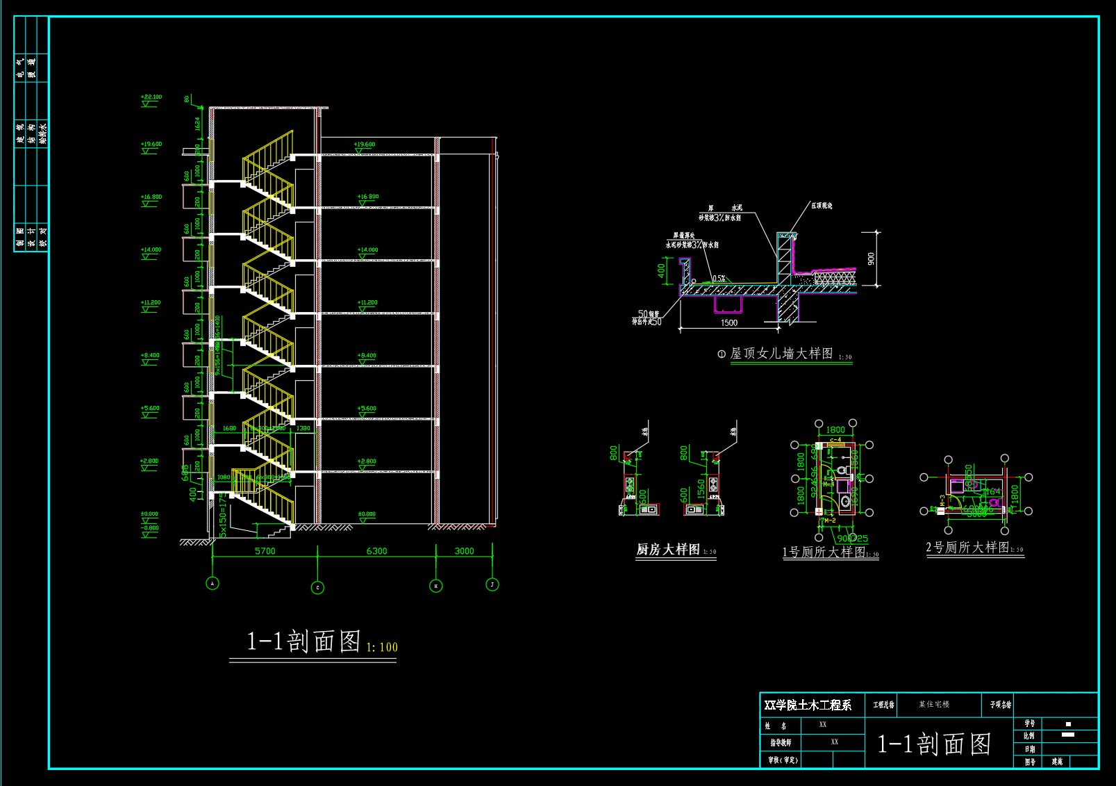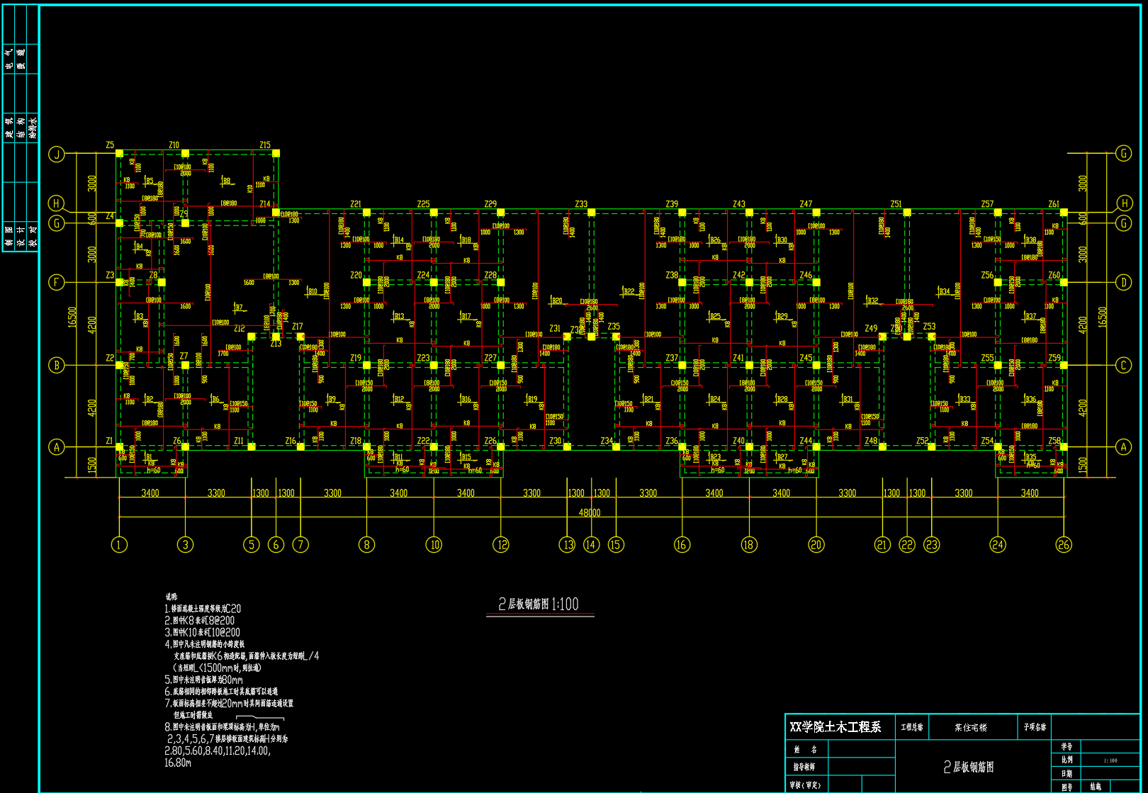 湖北某市某7层框架结构住宅设计(结构计算书,CAD图纸)