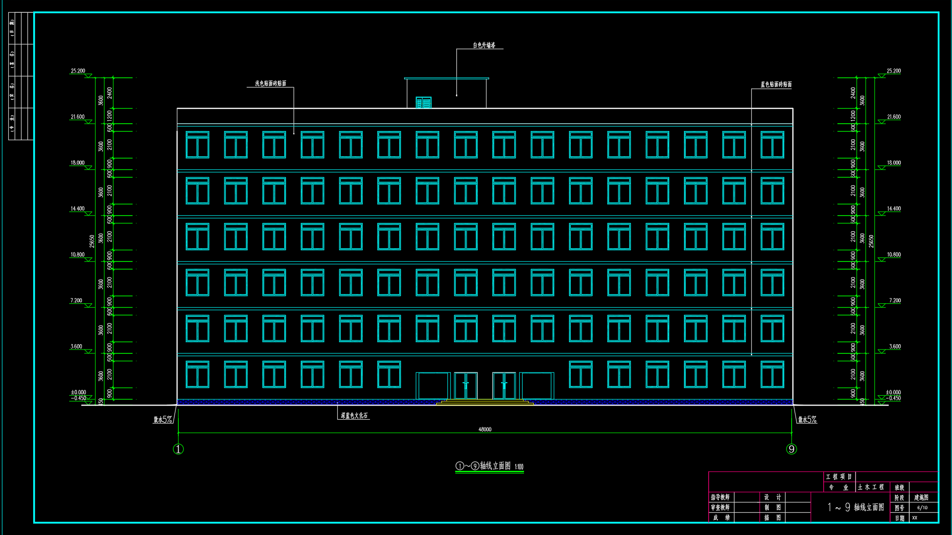 湖北某7层4320平米七层框架住宅楼设计(计算书、开题报告、任务书、建筑、结构图)